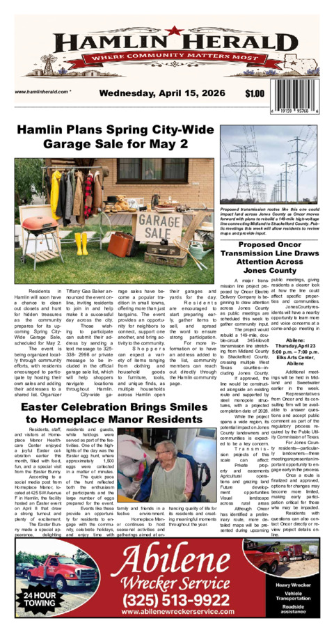 A major transmission line project proposed by Oncor Electric Delivery Company is beginning to draw attention across Jones County as public meetings are scheduled this week...